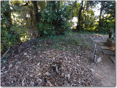 ![]() ▲主郭跡(墓地)への登り口。 |