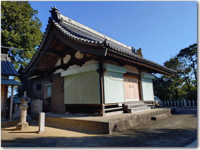 ![]() ▲神明社の社殿。瓦には三つ葉葵の紋がある。 |