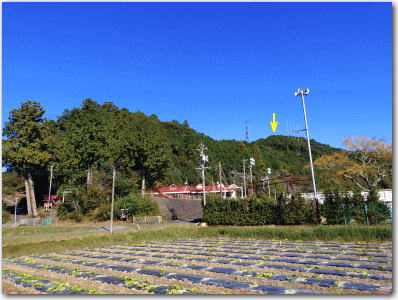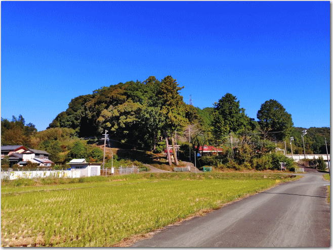 ![]() ▲天方本城の全景。矢印部分が本曲輪となる。 |
