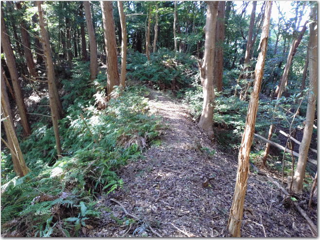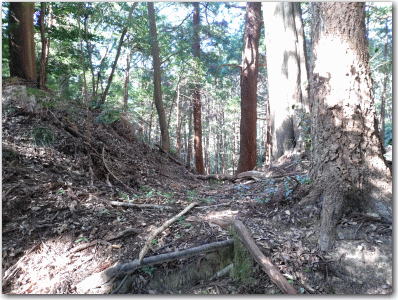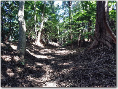 ![]() ▲急に尾根道が狭くなる一騎駆けの遺構。 |