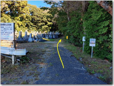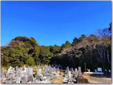 ![]() ▲墓苑の裏山が城址である。 |