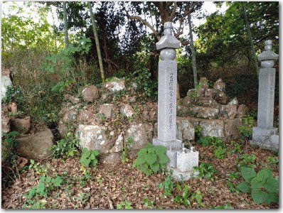 ![]() ▲本来の墓塔は笠塔婆の背後のもので安政の大地震で倒壊したままとなっている。 |
