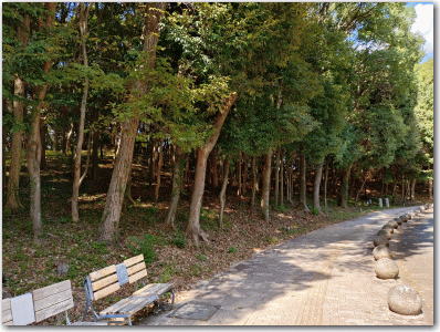 ![]() ▲南北に連なる丘。歩道の右側は駐車場となっている。 |