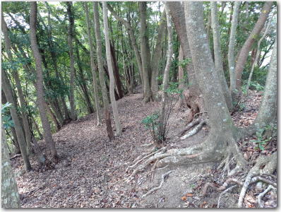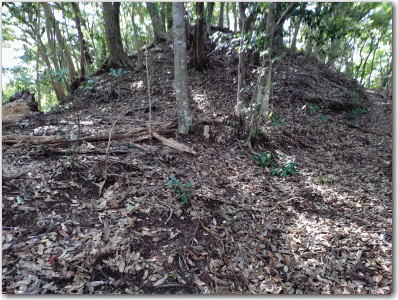 ![]() ▲腰曲輪から主曲輪を見上げる。 |