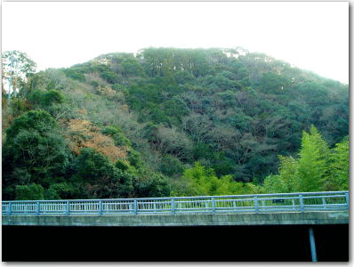![]() ▲倉真川越しの松葉城。手前の橋は県道81号線である。 |