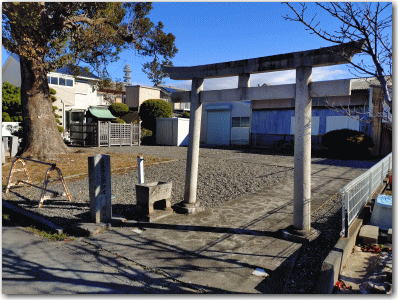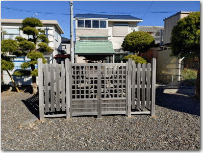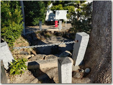 ![]() ▲神社の傍らに残る鎌研ぎ池。水は無い。秀吉は馬草を刈る鎌をこの池端で研いだという。 |