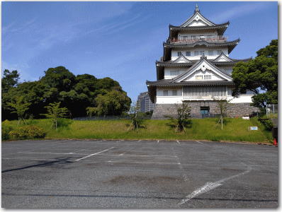 ![]() ▲模擬天守(郷土資料館)東側の駐車場。 |