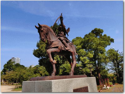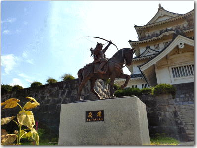 ![]() ▲模擬天守前の千葉常胤の像。 |