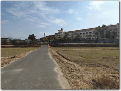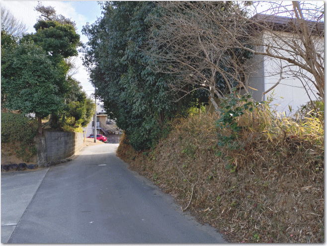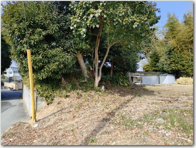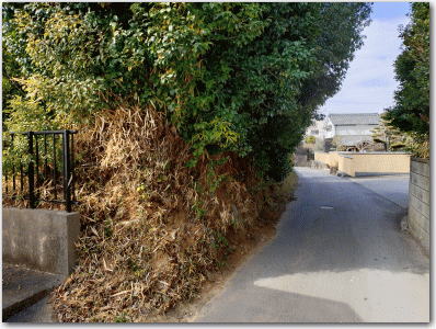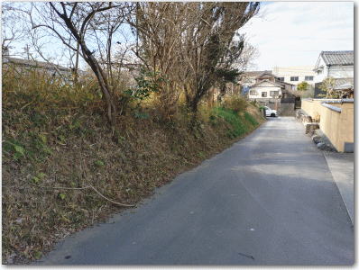 ![]() ▲小学校の東側の字土井に残る土塁跡。 |