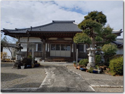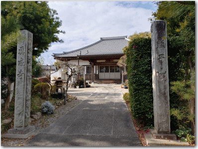 ![]() ▲真成寺本堂。境内に荒川義広の墓塔がある。 |