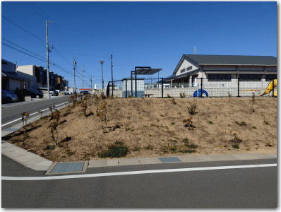 ![]() ▲ふれあいセンターの南東側は公園となっており、段々になっている。 |