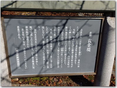 ![]() ▲吉良義央の築いた「黄金堤」。ここにも義央の馬上像がある。 |