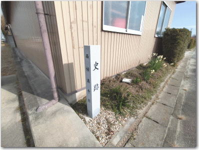 ![]() ▲反対側面には「西 妙満寺跡」とあり、両史跡の境目にこの石標が建てられている。 |